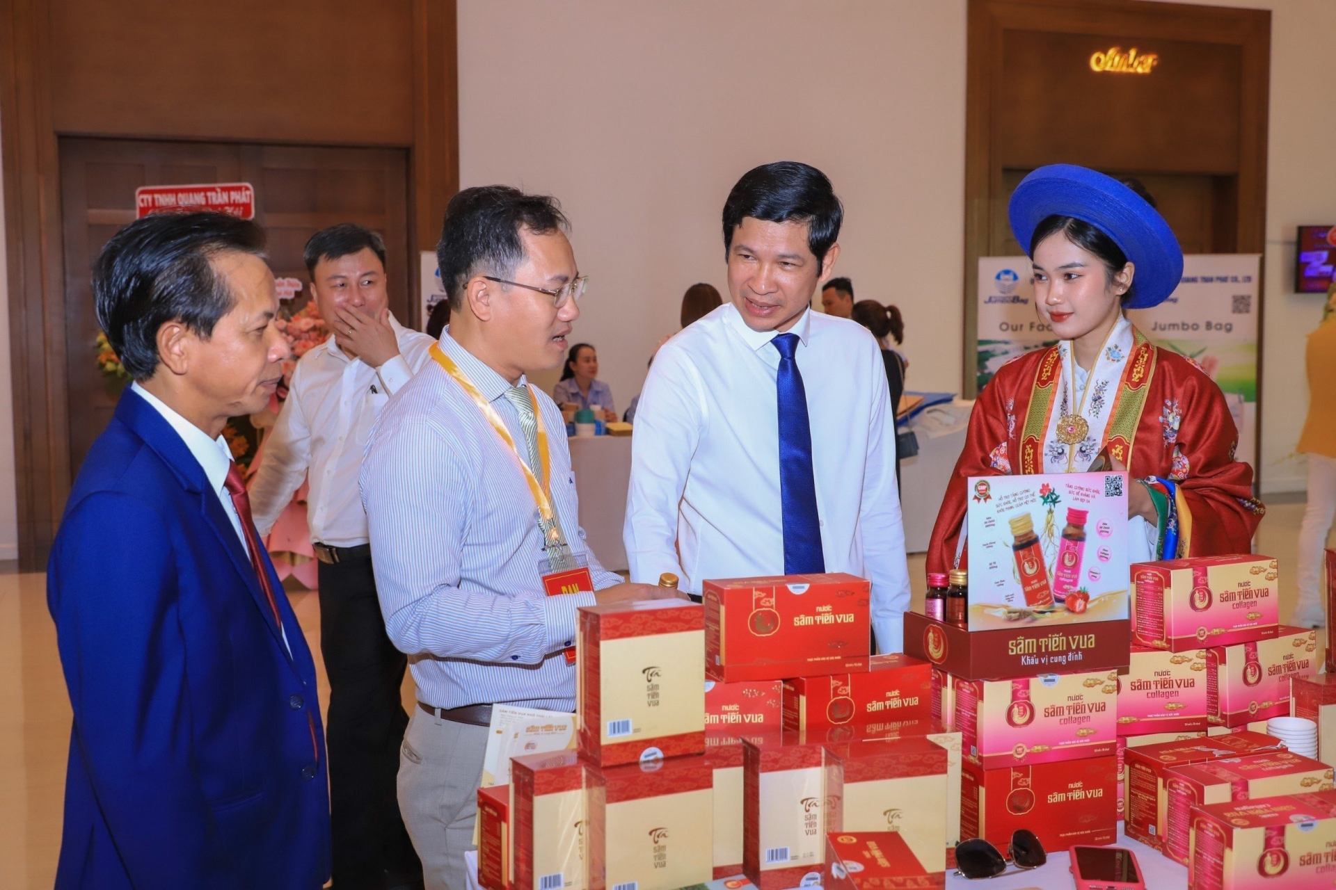 Đồng chí Hồ An Phong - Tỉnh Ủy viên - Phó Chủ Tịch UBND Tỉnh Quảng Bình thăm quan gian hàng Sâm Tiến Vua
