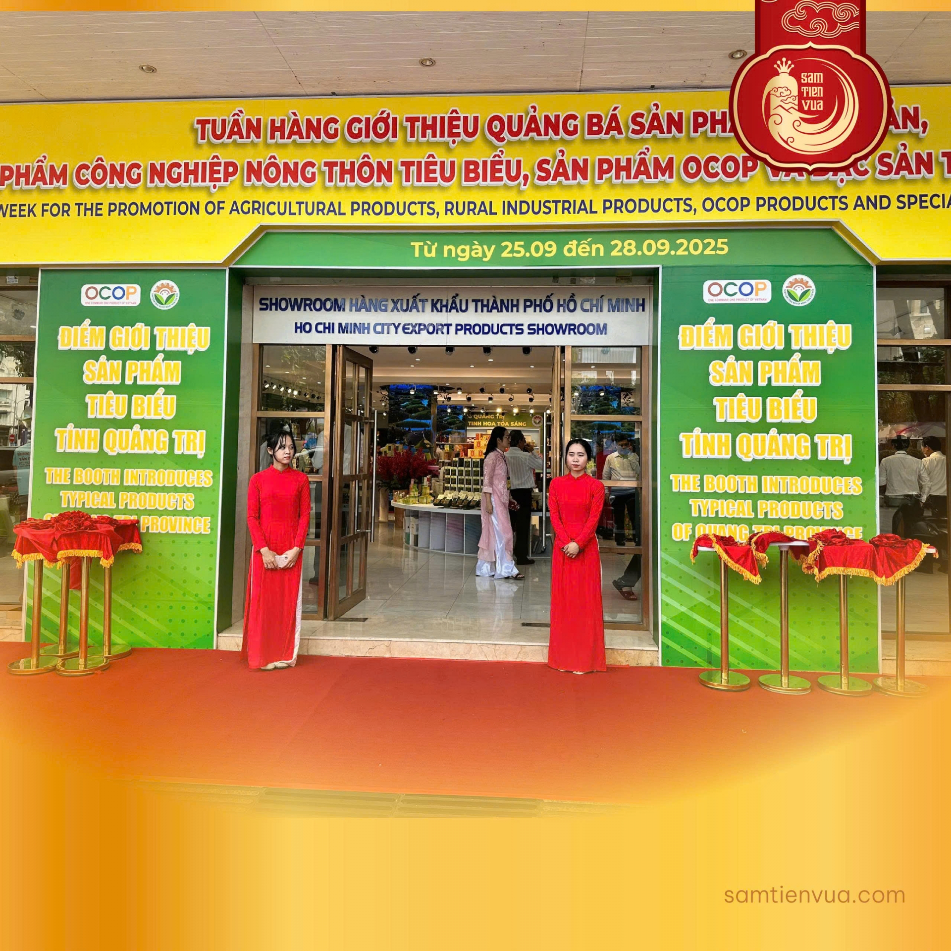 Sâm Tiến Vua tự hào góp mặt tại tuần hàng, mang đến tinh hoa Sâm Bố Chính – sản vật từng được tiến vua dưới triều Nguyễn cùng các sản phẩm dưỡng sinh cao cấp. Đây là dịp để chúng tôi gặp gỡ, kết nối và chia sẻ những giá trị sức khỏe, văn hoá cùng Quý khách hàng, đồng thời khám phá nét đẹp của đặc sản Quảng Trị và sản vật khắp vùng miền.